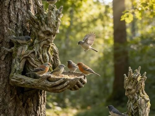 1. đŸ„‡A Tree-Integrated Bird Feeding Sculpture, Garden Art Sculptu